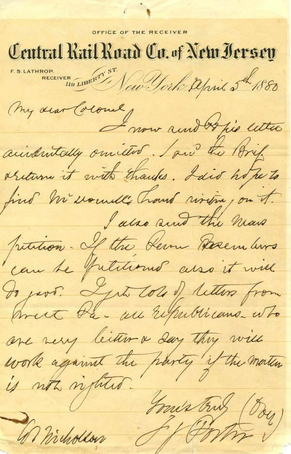 Abraham Lincoln Autograph Letter Signed. One pagFeb 26, 2026John S. "Rip" Ford Autograph Letter Signed. ThreFeb 26, 2026John D. Imboden Punishment, Men Arrested BrotherMar 02, 20267th NH Infantry Fort Jefferson postal covers/lettersMar 02, 2026John S. "Rip" Ford Autograph Letter. One page, 7Feb 26, 2026Pre-Civil War Pro & Anti-Catholic, Irish content etc.Mar 02, 2026Soldier predicts end of the wretch Harper's Ferry etc.Mar 02, 2026Capt Arthur T. Wilcox 7th OH Harper's Ferry relatedMar 02, 2026Shenandoah Valley: Letter about captured son, etc.Mar 02, 2026Arrest of Col. John F. Pierson documentMar 02, 2026George A. Custer Partial Autograph Letters (2).Feb 26, 2026F.P. Crossman to State Rep. from HospitalMar 02, 20261864 Discussion of Harper's Ferry destruction, etc.Mar 02, 2026Daniel C. Currier NH 14th Infantry, etc. TN & GAMar 02, 2026Ohio Infantryman letter, Andrew Jackson mentionedMar 02, 2026NH letters: Brainard D. Healey re: Gen. HookerMar 02, 2026