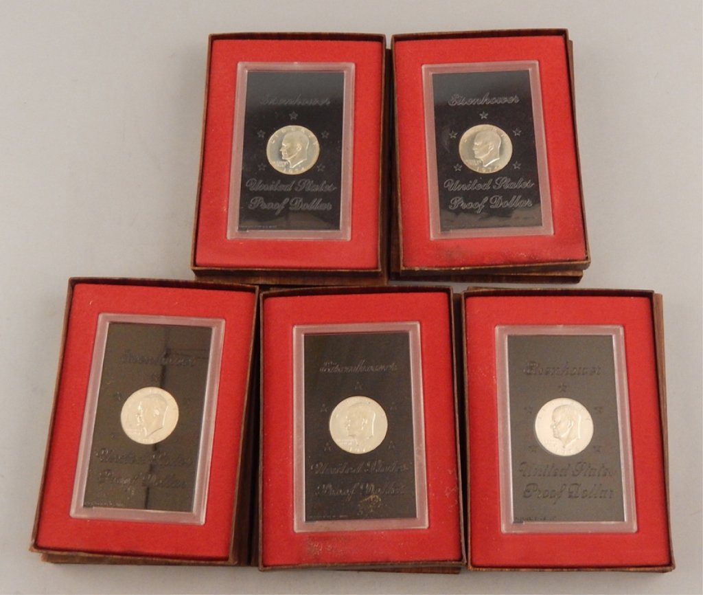 Five 40% silver 1974 Eisenhower proof dollars