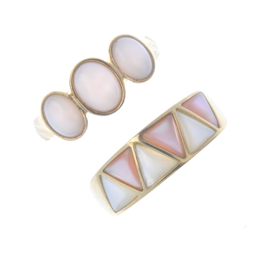 Five 9ct gold gem-set rings. To include a coral