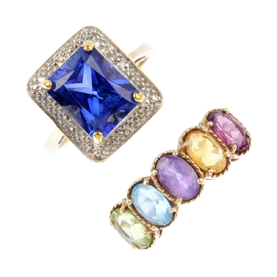 Five 9ct gold rings. To include a five-stone ring