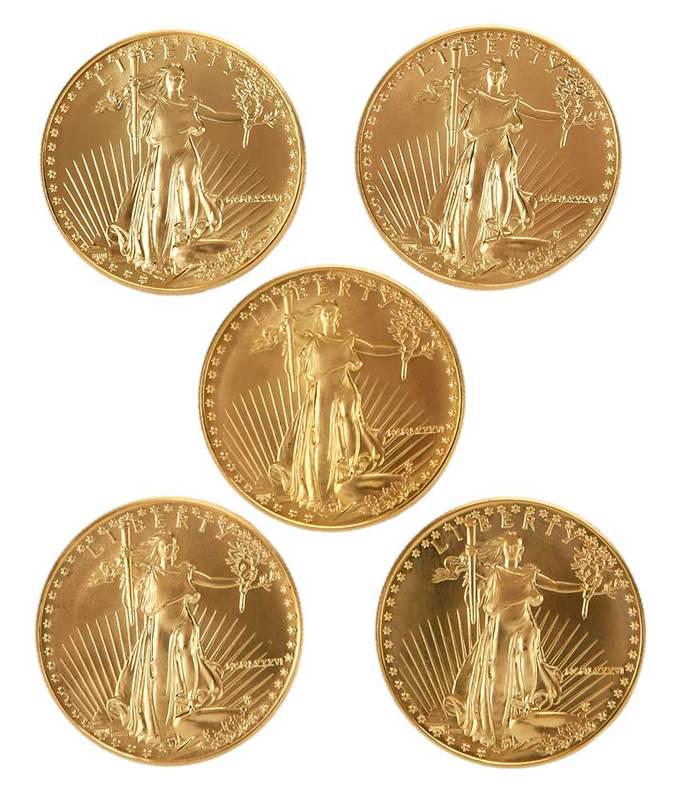Five American Gold Eagles