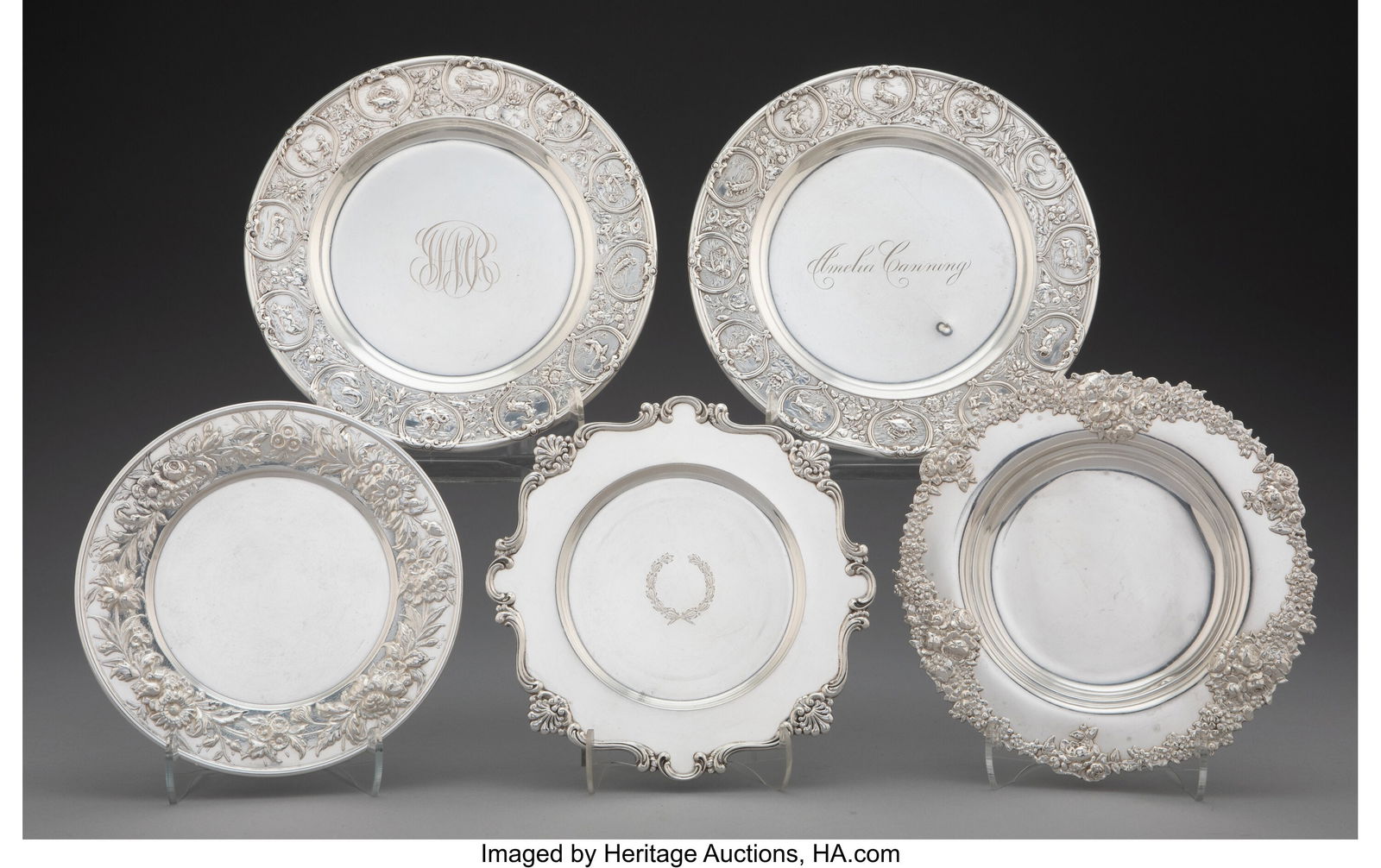 Lot of Antique English Porcelain Plates2 days Left20PC LOT OF STERLING SILVER ITEMS, 44.3 T.O.W.Mar 07, 2026Group Mostly Silver Plate + (1) Sterling CandleFeb 25, 2026A. Giraud & Brousseau - Limoges Porcelain Combined Corail Services, 108 PiecesFeb 26, 2026(17) COLLECTION OF STERLING, .800 SILVER & WEIGHTED STERLING TABLE ARTICLESFeb 22, 202611pc Discontinued Gorham Cherrywood Dinner Plate Set2 hrs LeftA Collection of 4 EAPG Pressed Glass Tableware Articles4 days LeftFour Sterling Table Articles Including a Wine Coaster and Others6 days LeftReed & Barton, Etc. Silver Plate Tableware, 10 PcsMar 12, 2026A SET OF TWELVE AMERICAN SILVER PLACE PLATES MARK OF GORHAM MFG. CO., PROVIDENCE, RHODE ISLAND,5 days LeftWilliam Adams, Etc. Silver Plate Tableware, 8 Pcs.Mar 12, 20268 Sterling Silver Baby and Table ArticlesFeb 26, 20264 Sterling Table Articles & Continental Silver BowlFeb 26, 20265 Sterling Silver Table ArticlesFeb 26, 20266 Sterling Silver Table Articles,Feb 26, 20262 Silver Trays & Continental Silver TrayFeb 24, 2026