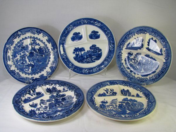 FIVE BLUE WILLOW BLUE WHITE GRILL PLATES