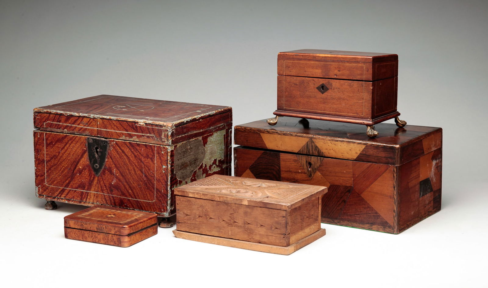 Lot of Three Flatware BoxesMar 04, 2026Reed & Barton & Others Flatware Boxes 4pc LOT6 days LeftSIX ASSORTED ANTIQUE WOODEN BOXESMar 07, 2026English Wooden Boxes5 days Left(4) COLLECTION OF CARVED WOOD, INLAID & LEATHER-CLAD TABLE BOXES1 day LeftAntique lap desk, Chinese lacquer jewelry box, and more boxes6 days LeftTWO ANTIQUE WOODEN DESK BOXES / CASKETMar 07, 202619th Century Tea Caddy & Other BoxesMar 07, 2026Three Victorian Tunbridge Ware Boxes1 day LeftTramp Art and Folk Art Wooden Jewelry BoxesMar 04, 2026Brass Bound Dovetailed Mahogany Traveling Desk Box with Three Hidden Drawers, 19th CenturyFeb 28, 20263 English Boxes & Erhard & Sohne Bronze Box, 19th C5 days LeftGroup of Contemporary Storage Boxes5 days LeftAmerican Folk Art Wood Boxes, 19th C., 2Mar 26, 2026Collection of Vintage Wood Tabletop Chests & Vintage AccentsMar 08, 2026Two New England Painted Document BoxesFeb 27, 2026