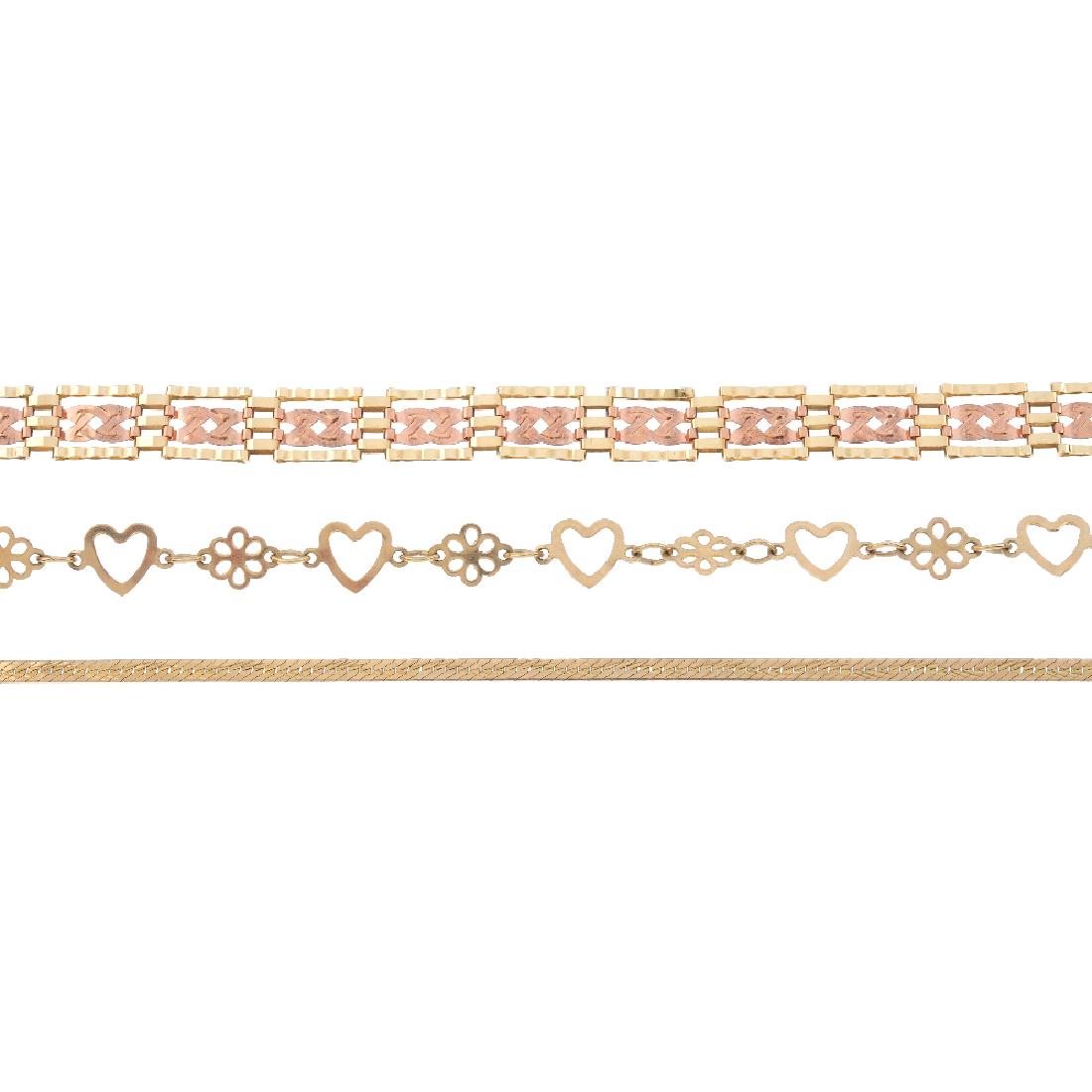 8 - 14K Yellow Gold Bracelet. 8" each, wt. 112.5 grams. 1 has the name Bev in diamond chips, 1Mar 10, 2026FILIGREE OVAL LINK BEADED CHAIN BRACELET 21K YELLOW GOLD5 days LeftA GROUP OF JEWELLERY OF JEWELLERY AND A WATCH* a rope-twist link bracelet * in gold * withMar 10, 2026Two Tone Gold Diamond Rope Link Bracelet 2.50ctw Natural Diamonds3 days LeftNEW 14K TWO TONE GOLD FANCY CZ BRACELET 14K Two Tone Gold Approx. 5mm Wide, 14mm Center Available in3 days Left(7) PIECE 14K BRACELET & ANKLET GROUP3 days LeftNEW 14K TRI COLOR GOLD FANCY 15 ANOS CZ BRACELETJun 24, 2025DIAMOND-CUT FIGARO LINK CHAIN BRACELET 14K YELLOW GOLD5 days LeftDIAMOND CUT FANCY LINK CHAIN BRACELET 14K YELLOW GOLD6 days LeftPlated 18KT Yellow Gold Diamond BraceletMar 10, 202614 kt. Yellow gold, 14K Yellow Gold Multi-Band Bracelet with 3.30 Carats of Diamonds - 3.5ct. tw.Mar 14, 2026NEW 14K TRI COLOR GOLD FANCY 15 ANOS CZ BRACELET 2mmMar 17, 2026Plated 14KT Rose Gold 3.90ctw Morganite Bracelet4 days LeftPlated 14KT Rose Gold 3.90ctw Morganite BraceletMar 10, 2026TIFFANY & CO. PERETTI DIAMOND LENGTHBRACELETMar 15, 2026Yellow Gold (18K) - Tiffany Link Bracelet Silver 92517 hrs Left