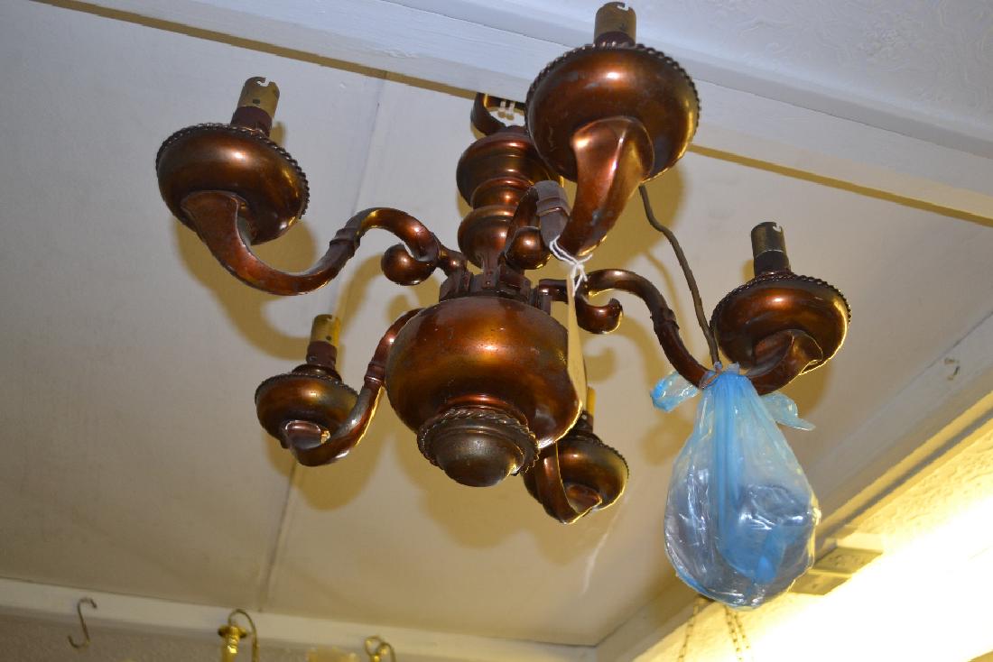 Five branch anodised metal chandelier