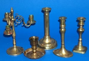 FIVE BRASS CANDLESTICKS. Comprising: a telescopic