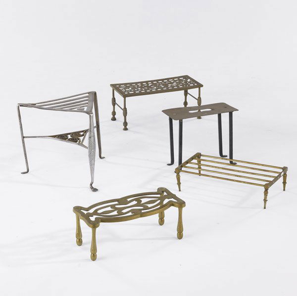 FIVE BRASS FOOTMEN & TRIVETS
