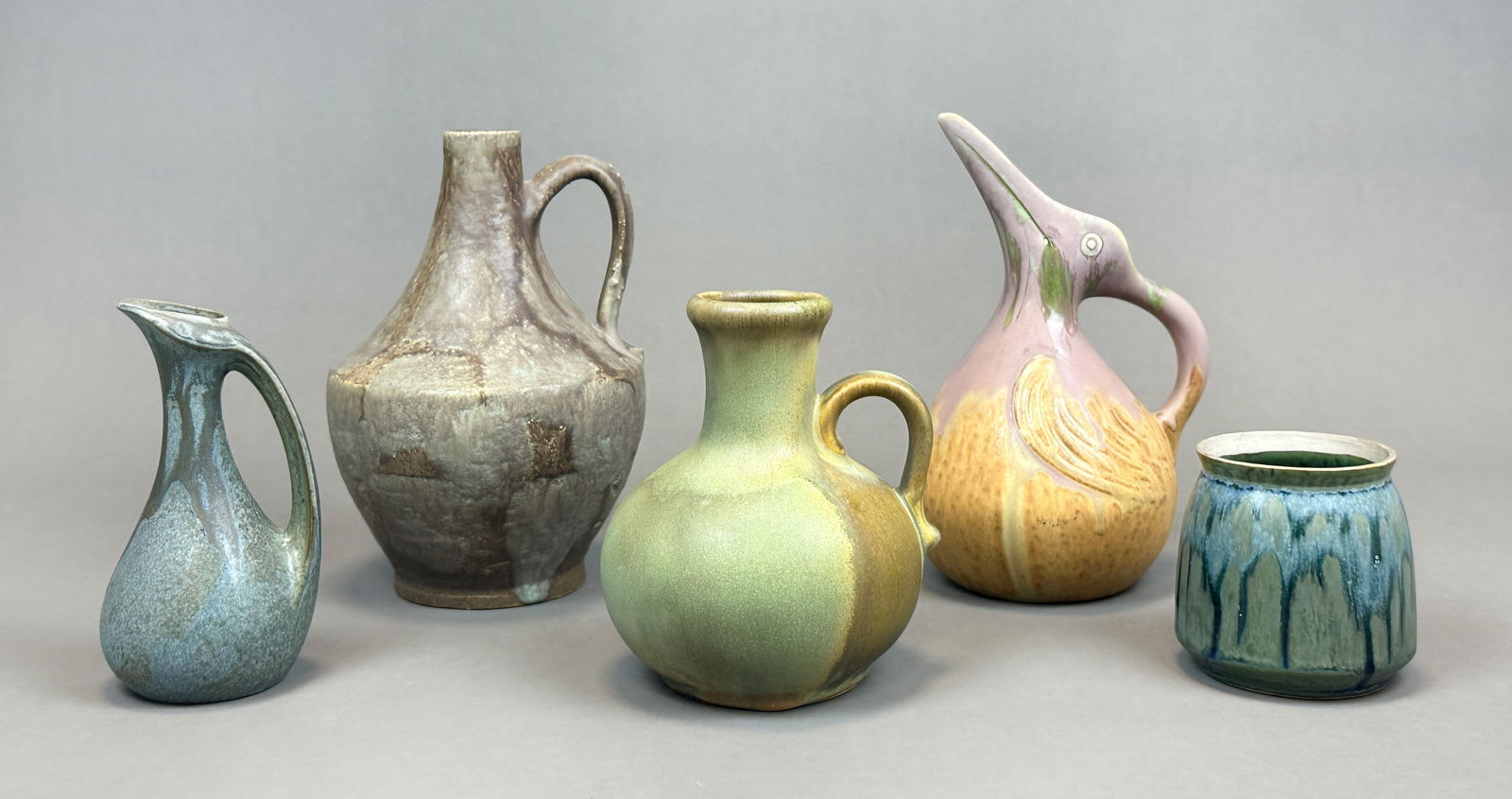 Vintage Lot of 5 Pottery/Stoneware/Clay PiecesFeb 21, 2026Lot of (3) Nemadji Art Pottery VesselsMar 15, 2026(11) misc. POTTERY pcs. From Hudson Valley estate, including GOUDA 12.5" high vase, FULPER vase,3 days LeftThree Amlash Pottery Vessels3 days LeftFive retro jugs in glazed ceramics. Beautiful glazes and shapes. Belgium, 1960s / 70s.Collection of 'Red Rubin' pottery with red glaze with gold, Upsala-Ekeby, Gefle. Design ArthurWEST GERMANY CERAMIC VASE GROUPING C. 1970S6 days LeftChelsea Keramic Art Works, Collection of four vessels2 days LeftA Collection of Ceramic Pitchers and Candlestick, Mixed StylesFeb 15, 20262pc Studio Ceramic Art Pottery, Ewer and Vase4 days LeftEight Japanese Table Articles2 days LeftSix Belgian miniature vases in glazed ceramics. Mid-20th century.North Carolina Pottery GroupFeb 21, 2026FIVE ACCOLAY VESSELS Accolay, France, c. 1960, glazed ceramic, all with incised mark 'Accolay,' ...Fulper Pottery, Cabinet vases, set of three2 days LeftFIVE PIECES OF ANDRE L'HELGUEN (1935-2017) FOR KERALUC QUIMPER POTTERY France, c. 1960, glazed c...