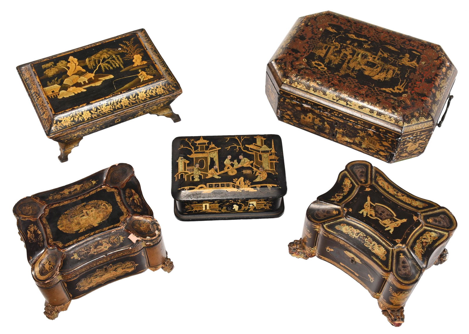 Cninese & Russian Wood, Bone & Lacquer Boxes 6pcsMar 26, 2026A Chinese gilt-lacquered box fitted with a pair of pewter tea caddies, late 19th century6 days LeftChinese Export Lacquered and Gilt Decorated Tea CaddyMar 25, 2026A Chinese Lacquer and Gilt Game Box with Playing Card Trays5 days LeftAntique Chinese Lacquered Wood Box with Gilt Chinoiserie Decoration, 19th c.5 days LeftFINE CHINESE EXPORT GILT & LACQUERED SEWING BOX & ACCESSORIESMar 29, 2026Antique 19th Century Chinese Export Lacquer Tea Caddy BoxMar 25, 2026Five Russian Lacquer BoxesMar 26, 2026A pair of exquisite hand-painted and gilded lacquer boxes from a rare collection.4 hrs LeftA Chinese Gilt Lacquered Wood Cosmetic Box with Porcelain sets Inserts5 days LeftChinese Stacked Black Lacquer with Gilt Chest, Crescent Shape 1970, H 7.5" W 21" Depth 10.5"3 days LeftA Chinese Export Gilt Lacquer Box, Canton, Qing dynasty(1644-1912)5 days LeftAn Exquisite Black Lacquer Painted Gold Flower Pattern BoxApr 03, 2026Mid Century Chinoiserie Black Lacquer Octagonal Box with Gold Leaf DecorationMar 24, 2026