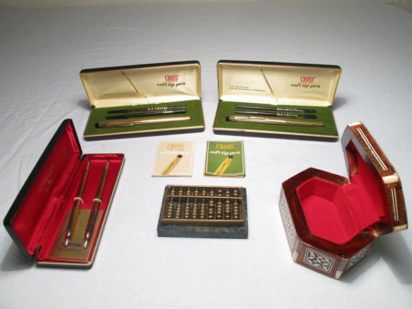 FIVE COLLECTIBLE ITEMS CROSS PENS ABACUS BOX