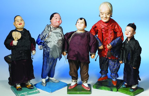 FIVE COMPOSITION-TYPE PAPIER MACHE CHINESE CHARACTE
