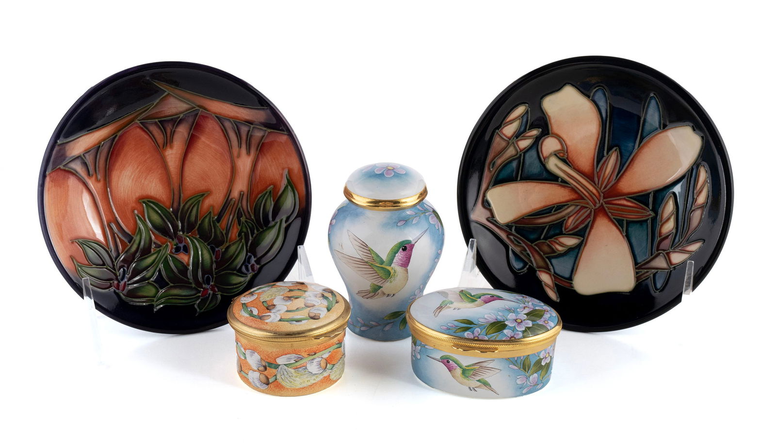 FIVE CONTEMPORARY MOORCROFT POTTERY ITEMS