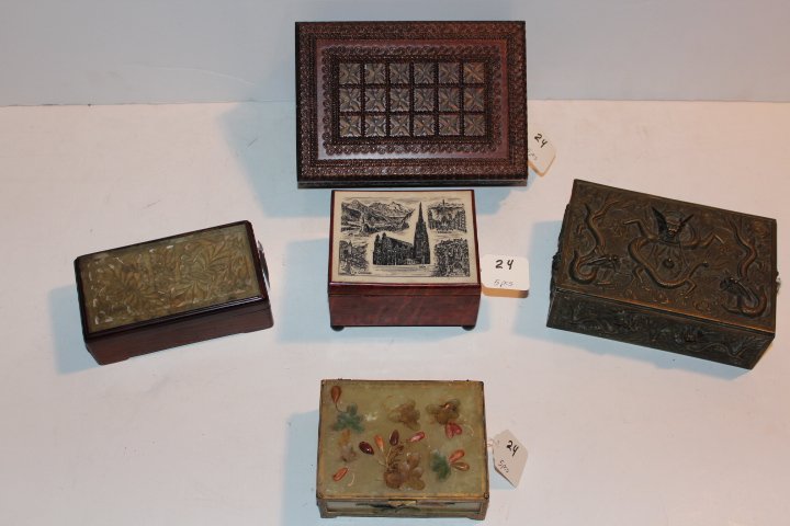 CARVED ARCHITECTURAL PLASTER MOLDS, LOT OF FIVEApr 24, 2026A wooden bronze mounted and eight tea boxes and boxes and covers in various types of wood, mainlyApr 24, 2026FIVE MEIJI AND EDO PERIOD JAPANESE KEYAKI WOOD BOXESApr 26, 2026Group of Chinese Export Boxes with Jade InsertsApr 29, 2026Lot of Dresser Boxes6 days LeftGroup of Covered Boxes, Guilloche, Lacquered, etc.2 days Left2 Cigar Boxes and 2 Jewelry BoxesApr 26, 2026