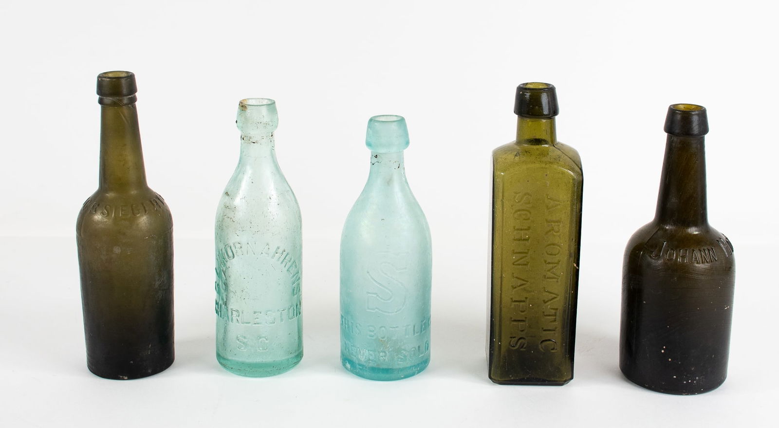 Five Early Bottles--Wolfe's Schnapps & Others