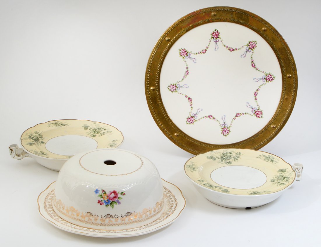 SoldGROUP OF ENGLISH FLORAL DECORATED CERAMIC TABLE ITEMSGROUP OF ENGLISH FLORAL DECORATED CERAMIC TABLE ITEMS Eleven pieces, comprising two covered bowls, a blue and white bowl, a covered mug, two pitchers, four plates, and a basin, ht. to 9 in. Footnotes:See Sold Price