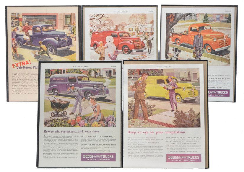 Five Framed Saturday Evening Post Dodge Ads 1946