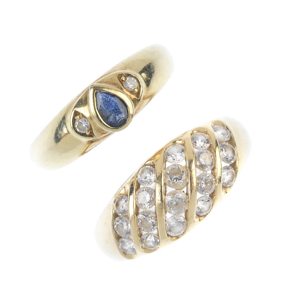 Five gem-set dress rings. To include an illusion-set