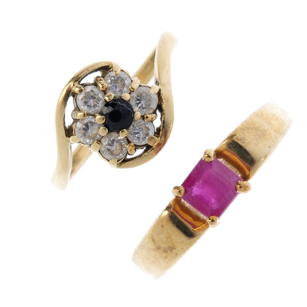 Five gem-set rings. To include a 9ct gold ruby