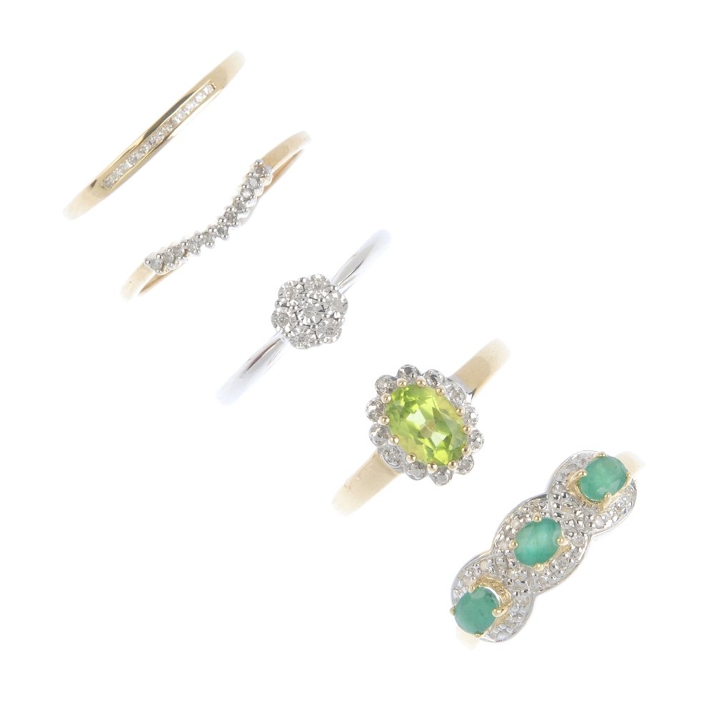 Five gem-set rings. To include a peridot and diamond