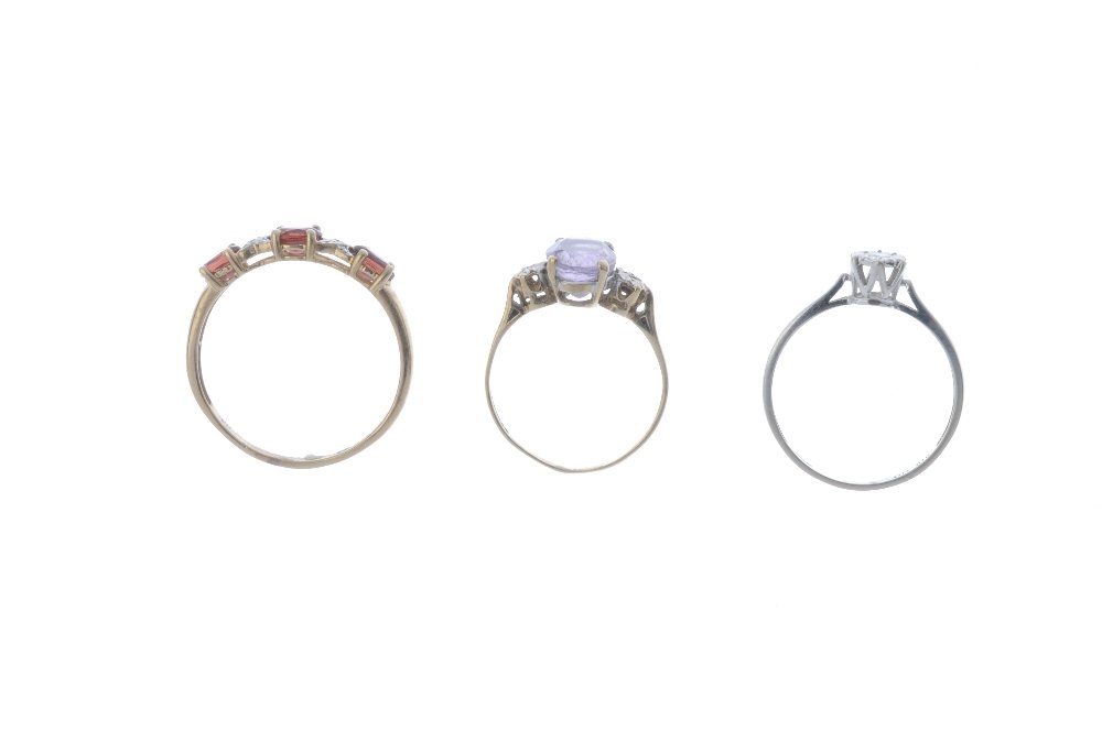 Five gem-set rings. To include an 18ct gold diamond