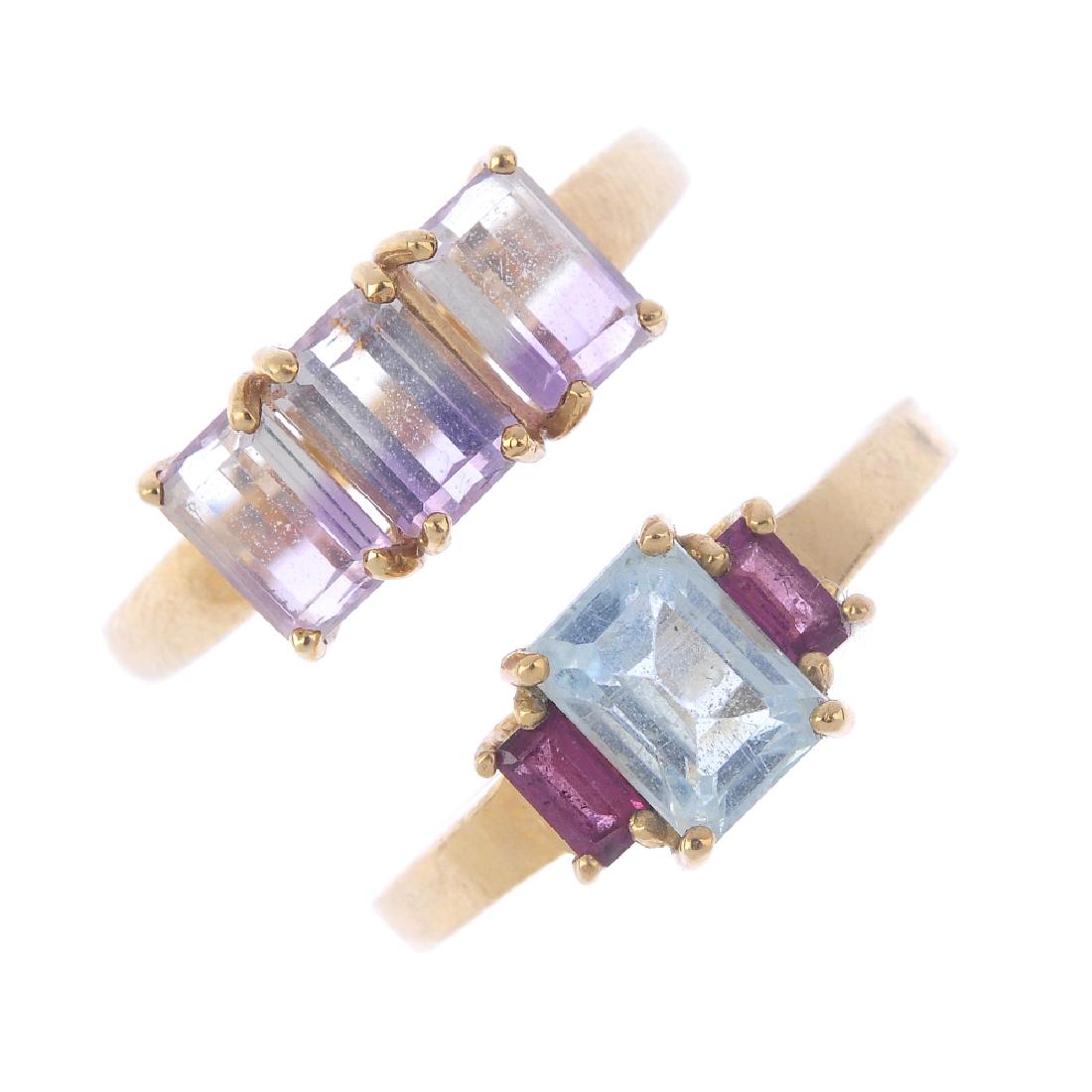 Five gem-set rings. To include an ametrine three-stone