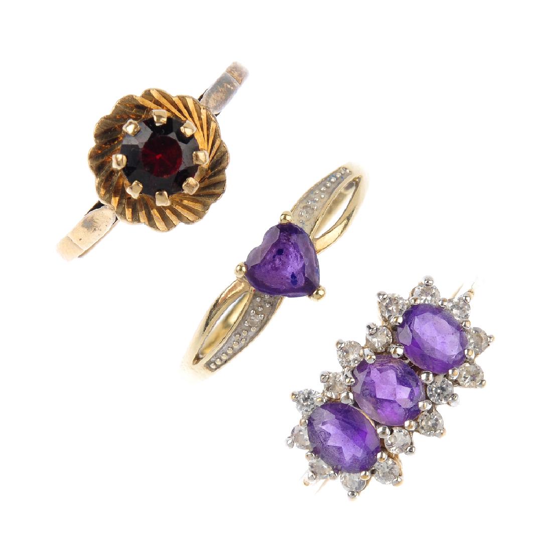 Five gem-set set rings. To include a 9ct gold ruby and