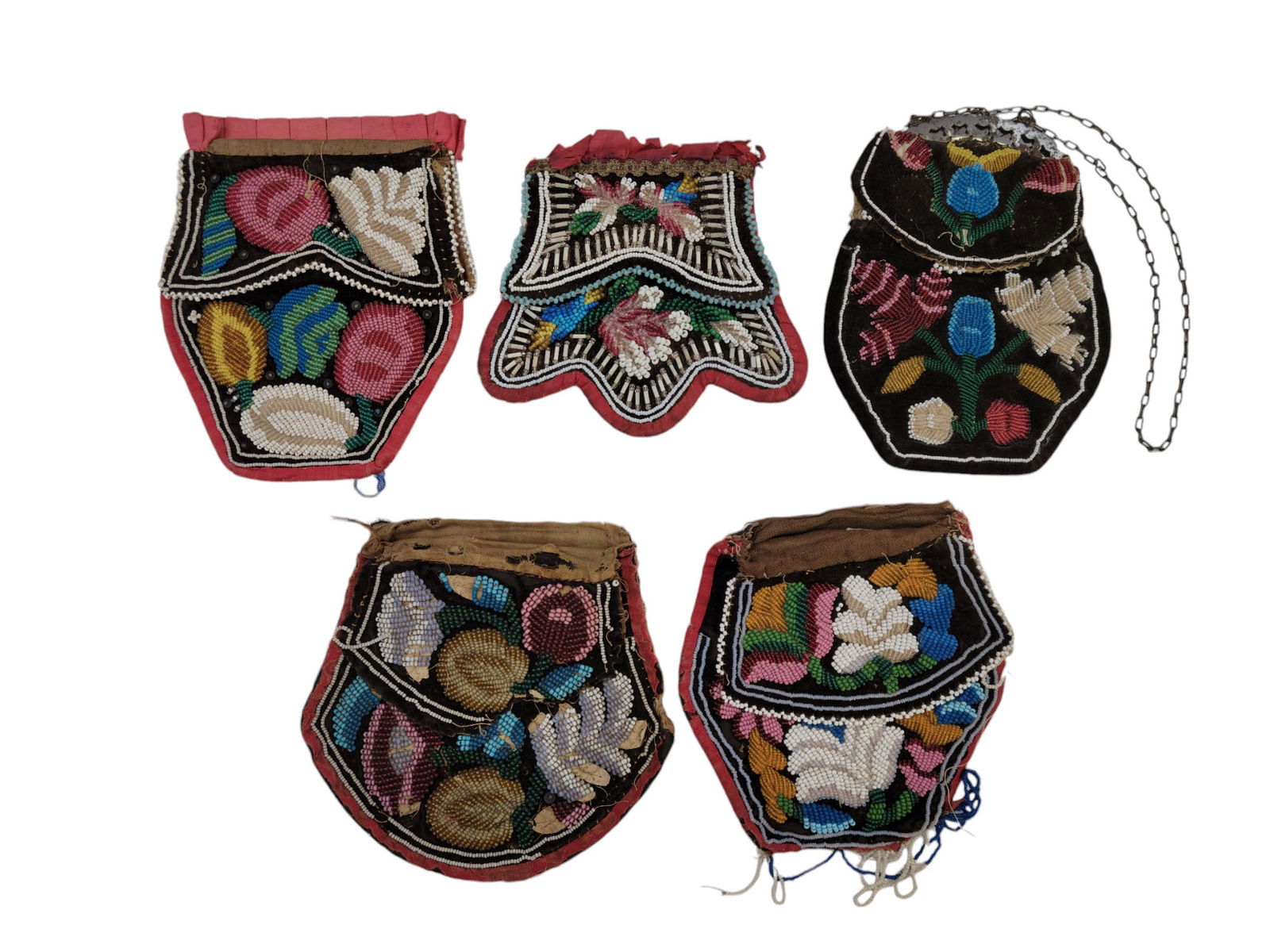 FIVE HAUDENOSAUNEE (IROQUOIS) BEADED PURSES
