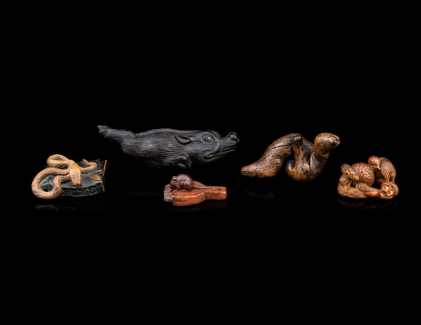 Five Japanese Carved Wood Netsuke
