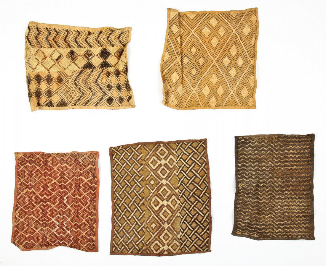 Five Kuba Raffia Textiles