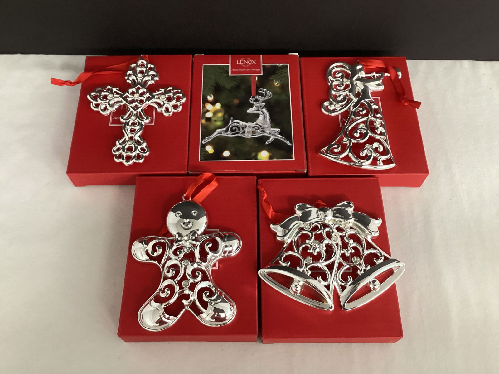 Five Lenox Sparkle and Scroll Silverplate Ornaments