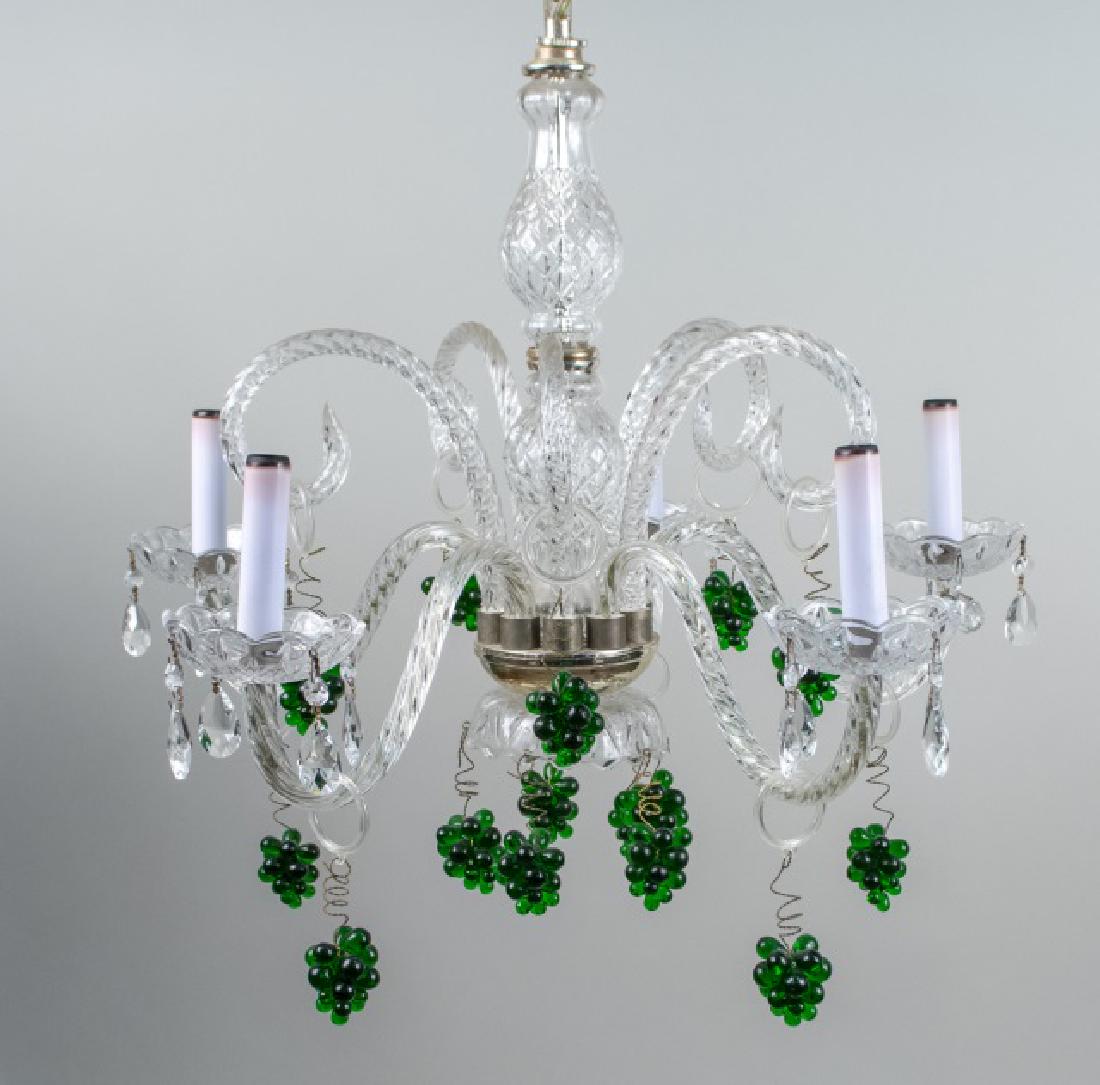 SoldITALIAN CRYSTAL GLASS CHANDELIER ATTR MURANO 194An Italian five light faceted crystal glass chandelier attributed to Murano circa 1940. Ht: 40" Wd: 21"See Sold Price