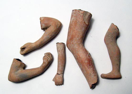 Five limbs from terracotta figures, Hellenistic