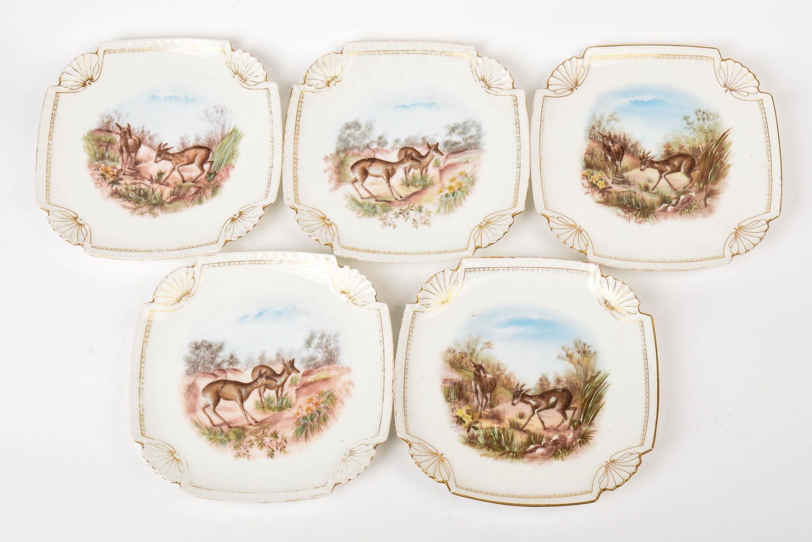 Five Limoges Plates With Deer.