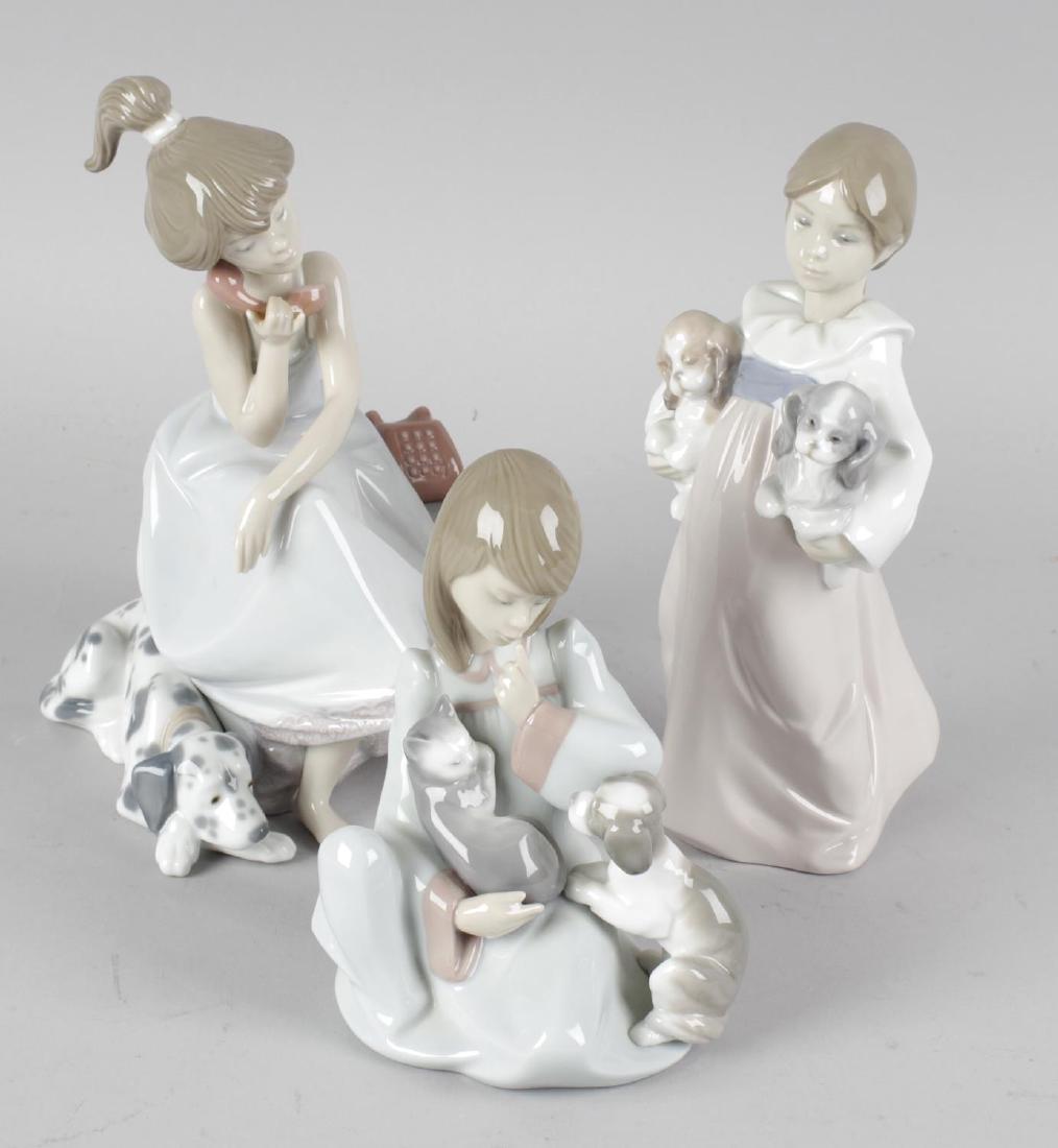 Five Lladro figurines. All featuring dogs or cats,