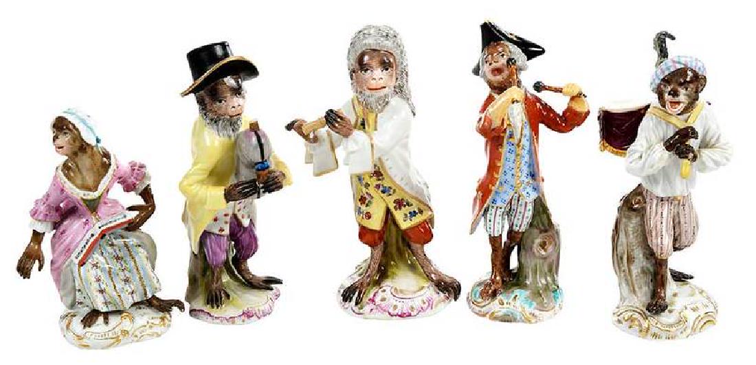Five Meissen Porcelain Monkey Orchestra Figures