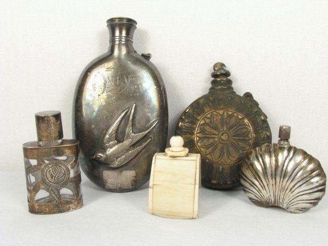Early Glass Bottle Lot (10)Mar 28, 2026Lot 5 Antique Pistol Powder Flasks6 days LeftLot of Assorted Sterling Silver Pieces, 60.79 Troy OuncesMar 14, 2026ASSORTED WEIGHTED STERLING AND OTHER ARTICLES, LOT OF SIX3 days LeftASSORTED GLASS AND POTTERY BOTTLES / JARS, LOT OF FIVE4 days LeftASSORTED SILVER-PLATED AND OTHER ARTICLES, LOT OF SEVEN3 days LeftASSORTED DECORATED STONEWARE AND OTHER RELATED ARTICLES, LOT OF NINE5 days LeftLot of sterling silver dresser accessories, including various covered glass jars and scent bottles.3 hrs LeftVIRGINIA, MARYLAND, AND OTHER WHISKEY / LIQUOR BOTTLES AND FLASKS, LOT OF 114 days LeftLot of sterling silver accessories and tableware. To include: Chinese wise man figural shakers, O.3 hrs LeftEstate Lot of 5 Antique Chinese & Bronze: Box, Bottle, Tray, Vase & Leather WalletMar 15, 2026Mexican Sterling Silver Lot, incl; Sauce/Gravy Dish, Liner & Ladle (4"h x 7"w), 2 Sterling CordialsMar 10, 2026Baccarat Perfume Bottle Tea Caddy LotMar 28, 2026Lot of European Perfume/Scent Bottles and American Pressed Glass TumblersMar 21, 2026SIX ANTIQUE CUT GLASS & CRYSTAL SCENT BOTTLES, ETC6 days LeftASSORTED TRIBAL / ETHNIC DECORATIVES, ETC6 days Left