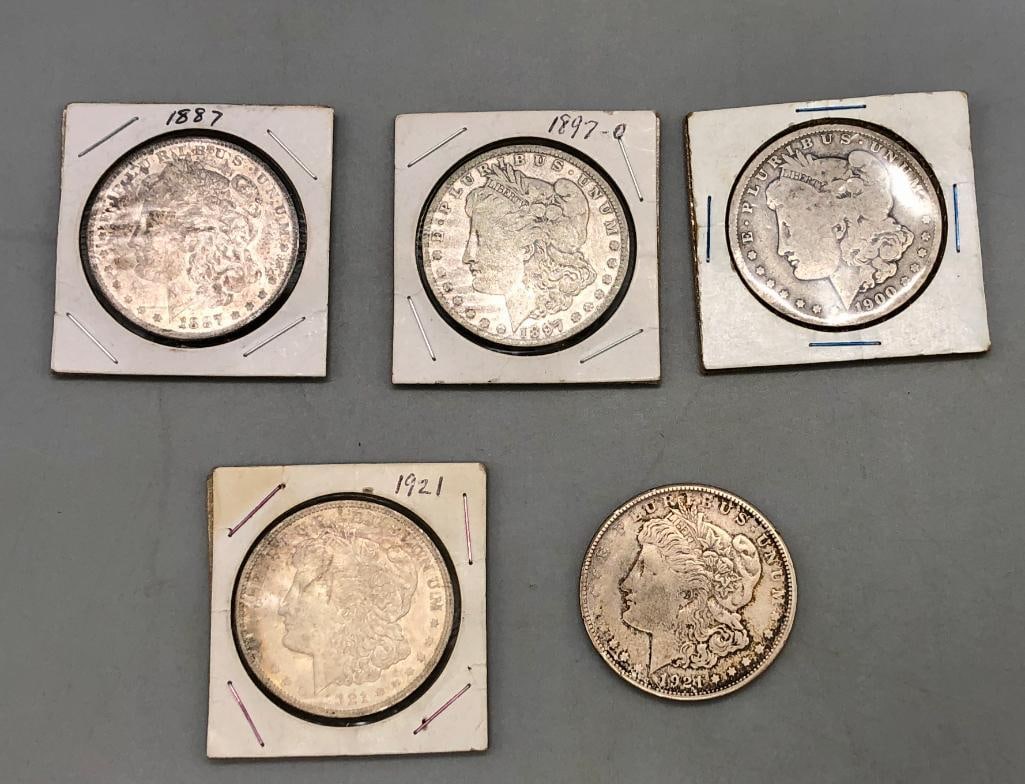 Five Morgan Silver Dollars 1800s And 1900s