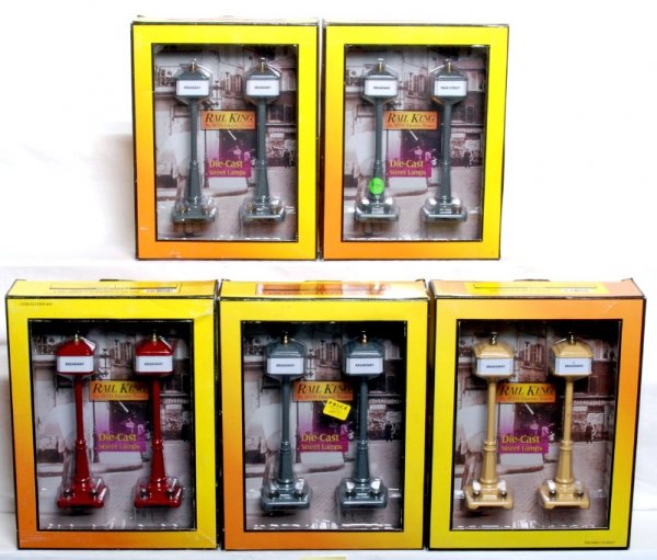 Five MTH Rail King No. 57 corner lamp sets