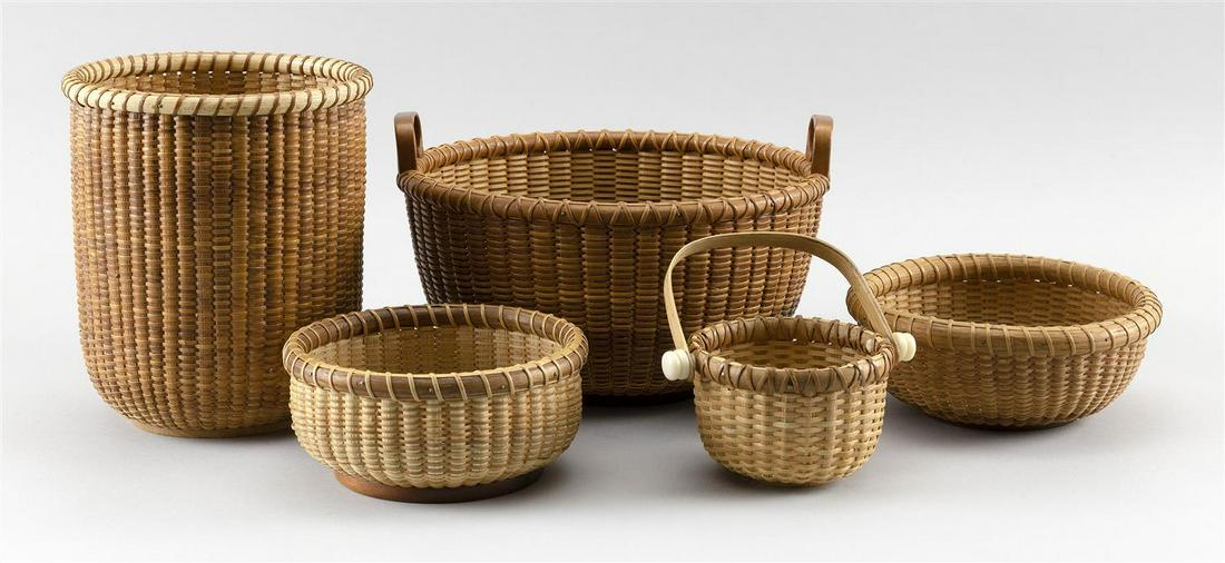 FIVE NANTUCKET BASKETS, INCLUDING ONE BY AINSLEY