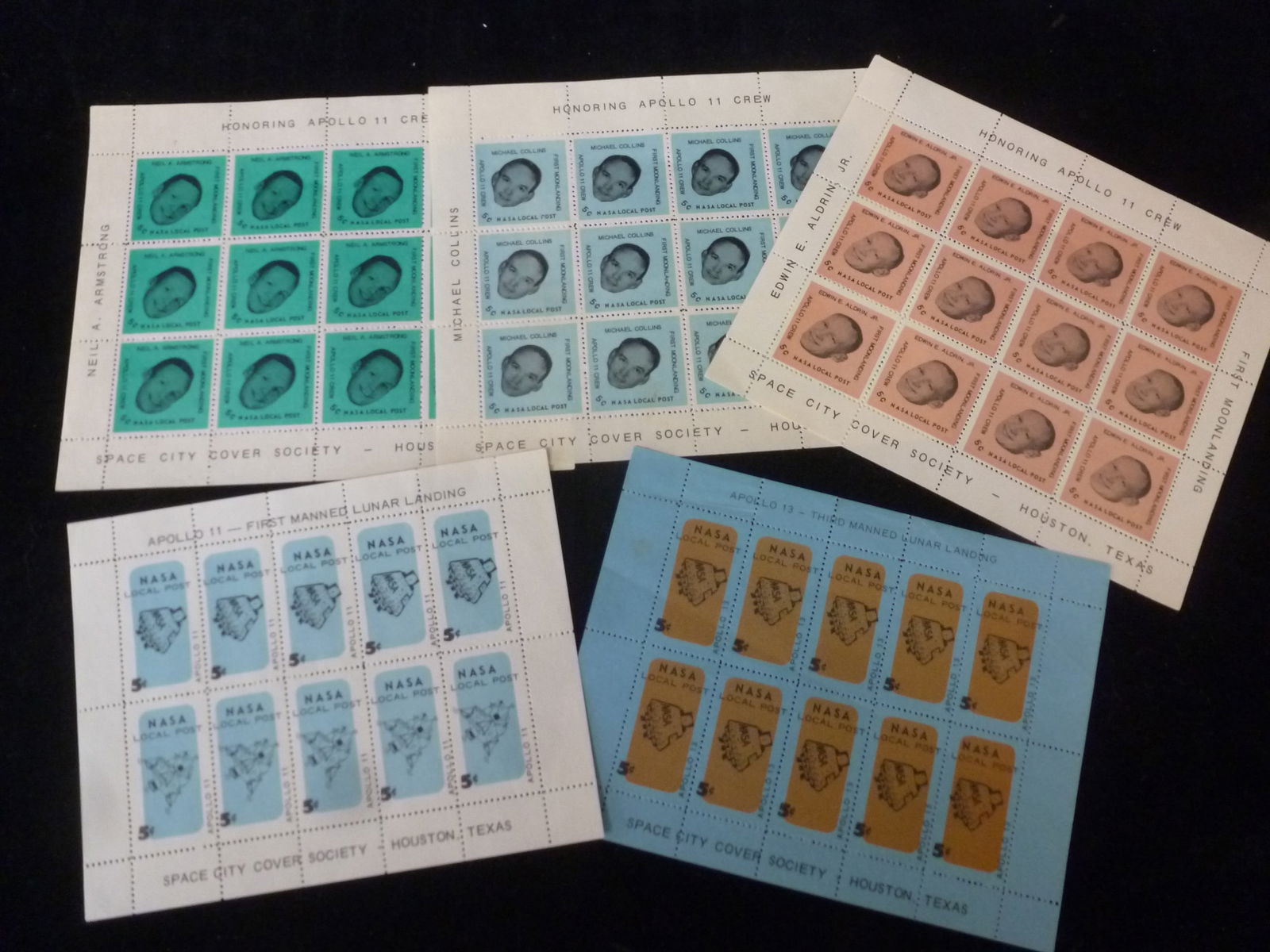 Five NASA LOCAL POST STAMPS in Plate Blocks: