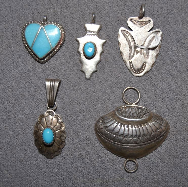 FIVE NAVAJO PENDANTS