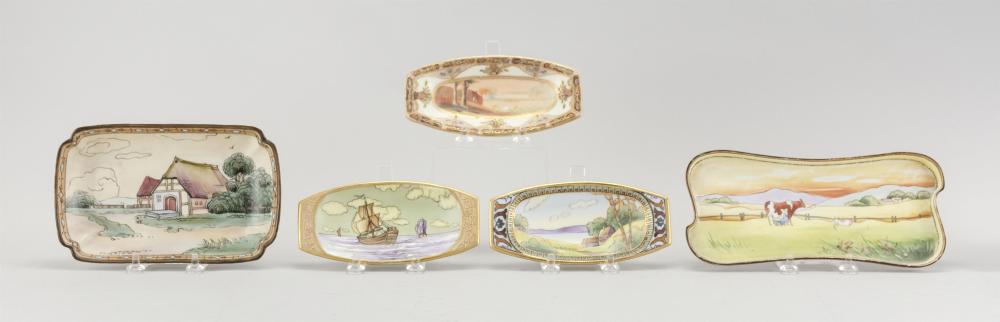 FIVE NIPPON PORCELAIN TRAYS 1) Rectangular, with