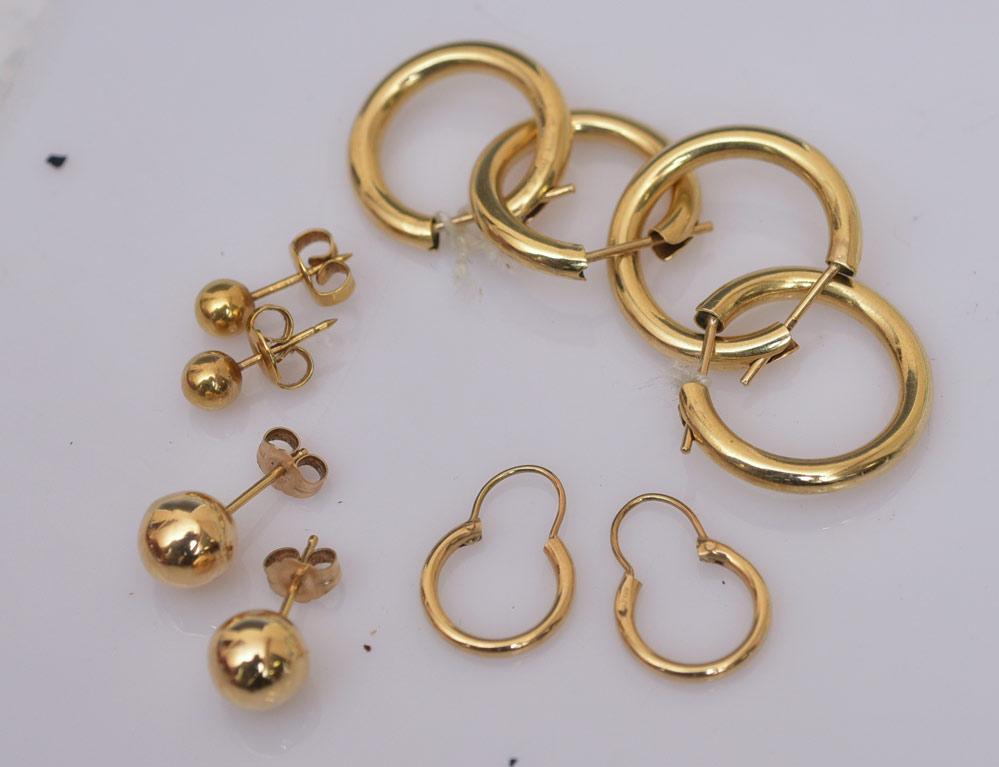 Five Pairs 14k Gold Earrings