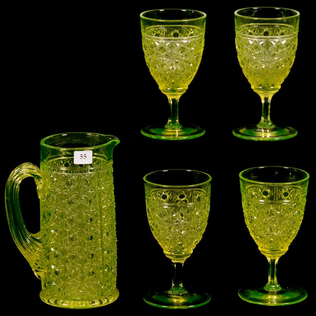 Five Piece Antique Vaseline Water Set