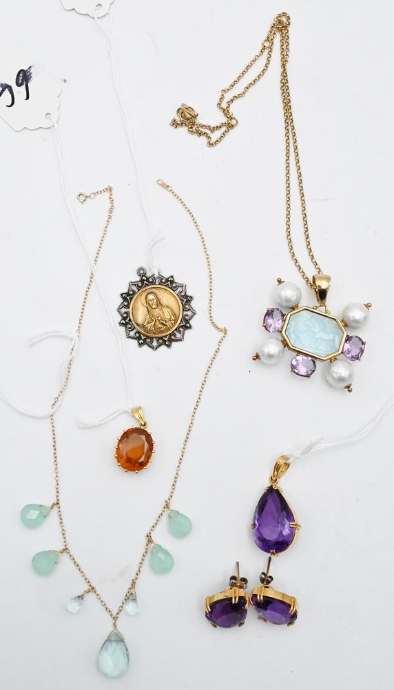 Five Piece Group, to include amethyst earrings and