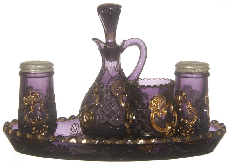FIVE PIECE PURPLE CROESUS CONDIMENT SET