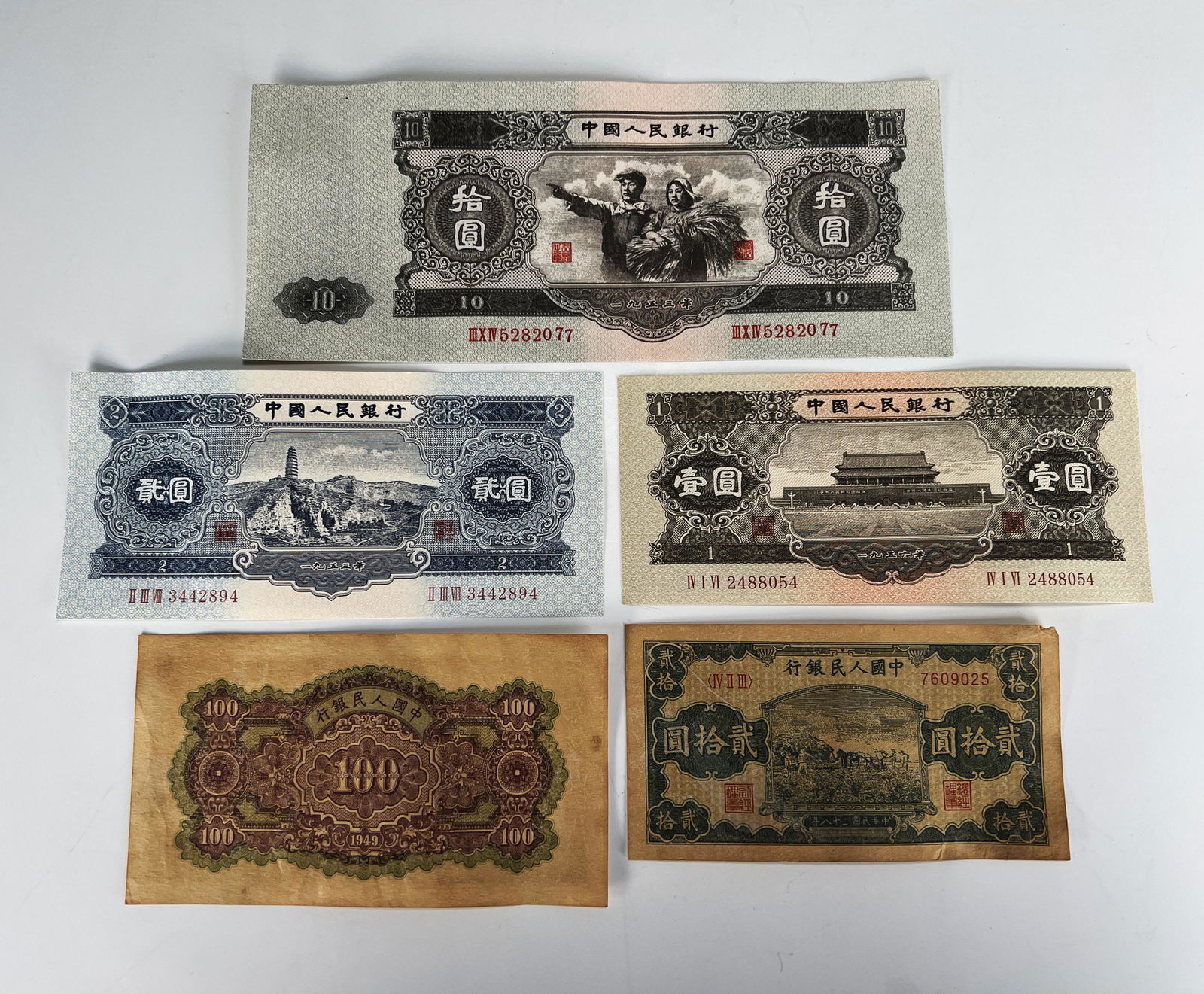 FIVE PIECES CHINESE PAPER CURRENCY