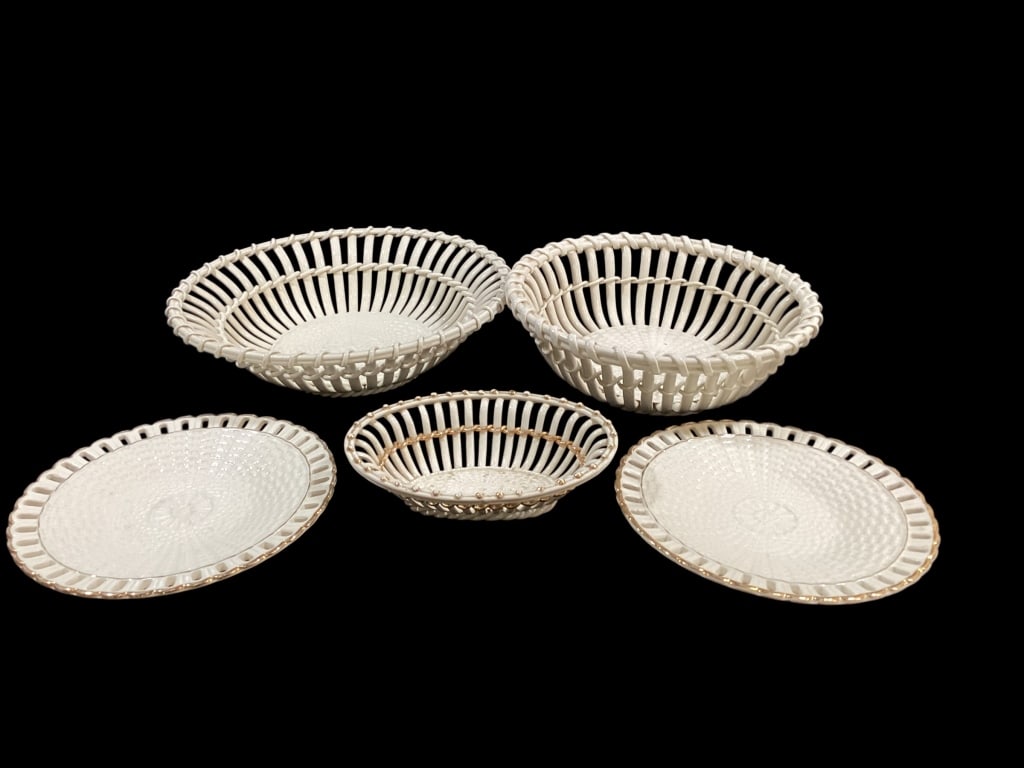 Group of Six Woven Baskets with Finnish Porcelain Inserts