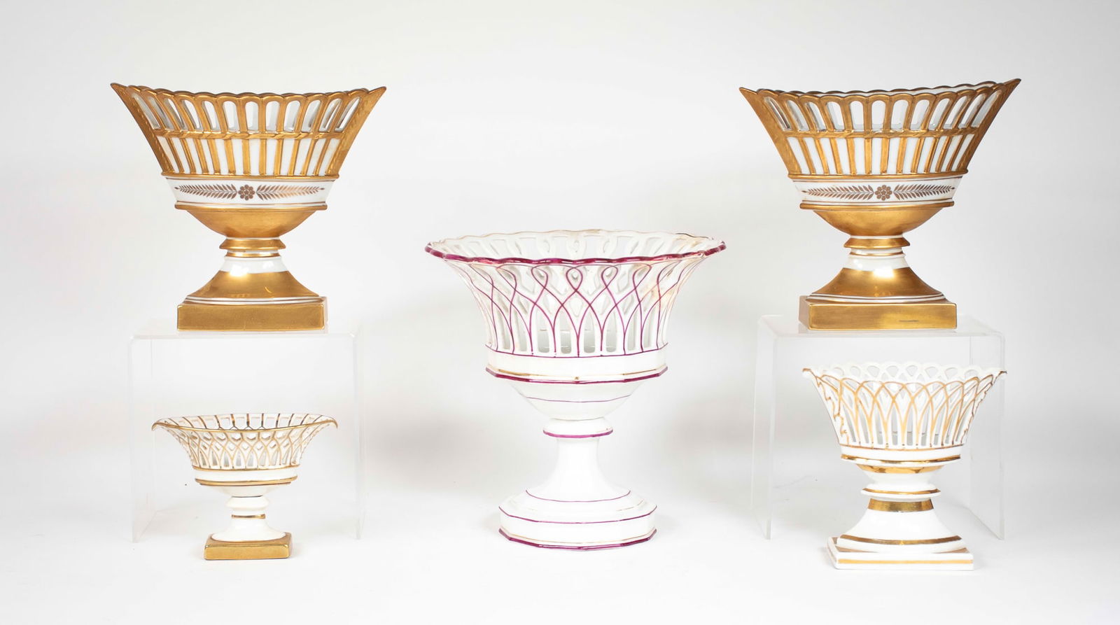 Five Pierced Old Paris Style Porcelain Baskets